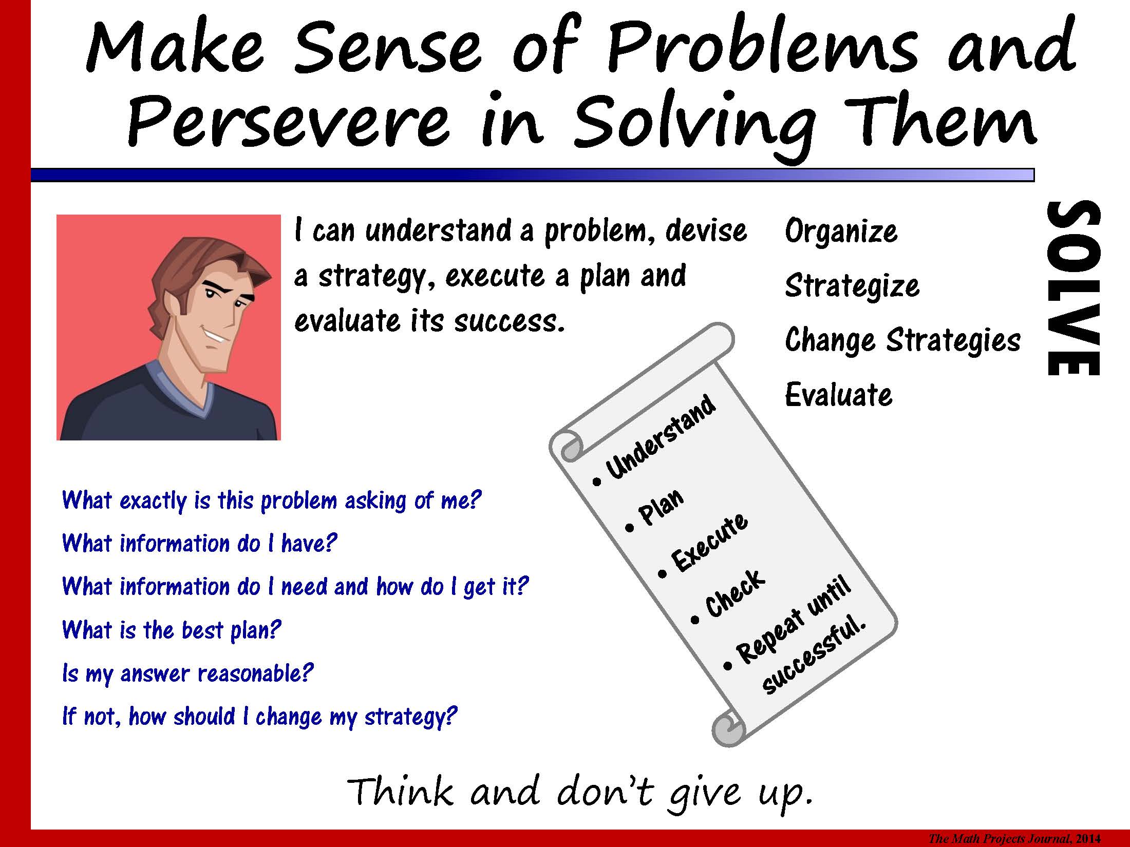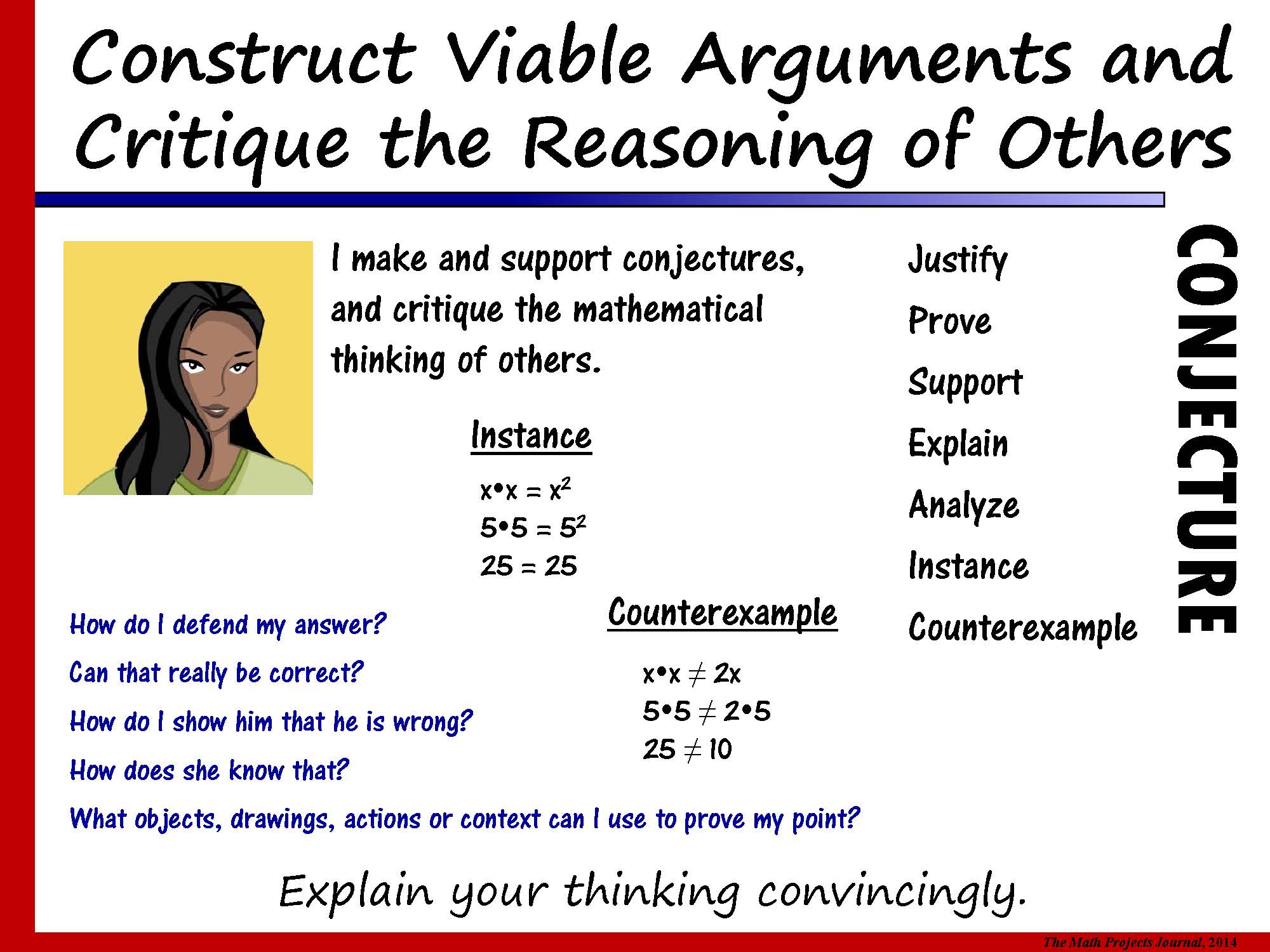 Let students know what you mean by phrases such as “critical thinking”, “problem-solving”, and “logical thinking”; give students examples of what these practices look like as well as tasks that allow them to develop and experience these important competencies.