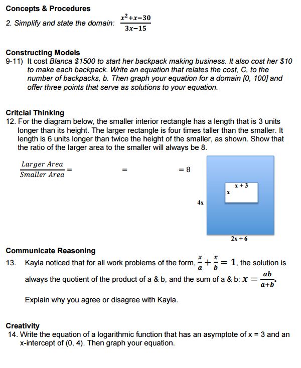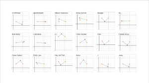 Once you have students working together, you need to be vigilant about monitoring the groups. A friend of mine, Nanette Johnson, coined the phrase ‘Group work only works when you work the groups.’ You can’t push desks together, hand them all a sheet of paper and go sit at your own desk to grade papers, and expect the students to be productive. You need to walk the room. My experience says that for the first few weeks of this, you will spend far more time enforcing the norms than discussing math. It is helpful to have the norms posted somewhere to easily reference. Eventually, the students will adapt, and you will be able to focus on the math.